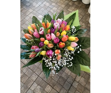 150,00 €Mazzo di 50 tulipani colorati, freschi e di stagione, selezionati per creare una composizione vivace ed elegante. Disponibili in una raffinata combinazione di colori, perfetti per regalare gioia, affetto e positività in ogni occasione.
